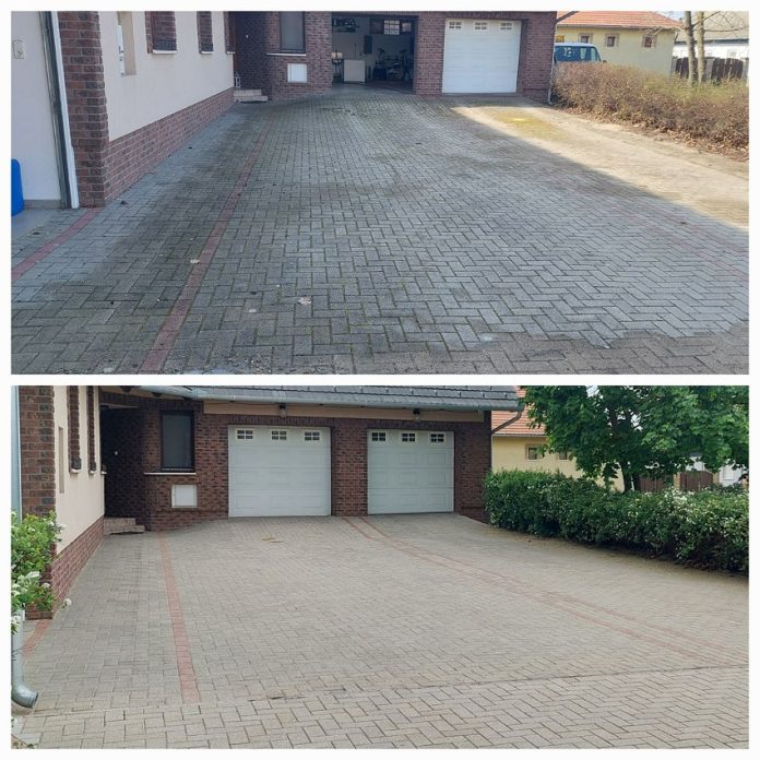 Ezután a lúgos, enyhén maró anyag csak a nem oda való szennyeződéseket megmarja, majd az időjárás 1-2 hónap alatt, de legkésőbb a következő télen lemossa onnan a koszt.